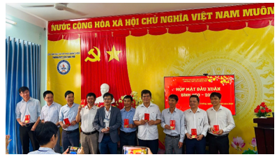 Thầy Thạch Cảnh Bê – Bí thư chi bộ, Hiệu trưởng nhà trường trao lộc đầu năm cho giáo viên tổ Sử - Địa - KTPL trường THPT Số 2 Đức Phổ