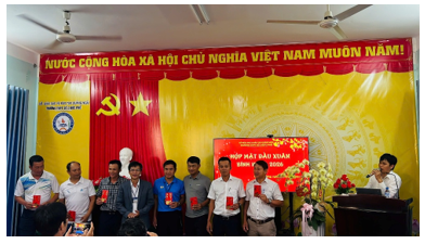 Thầy Trịnh Văn Tuấn – Phó Bí thư chi bộ, Phó Hiệu trưởng nhà trường trao lộc đầu năm cho giáo viên tổ Hóa – Sinh - CN trường THPT Số 2 Đức Phổ